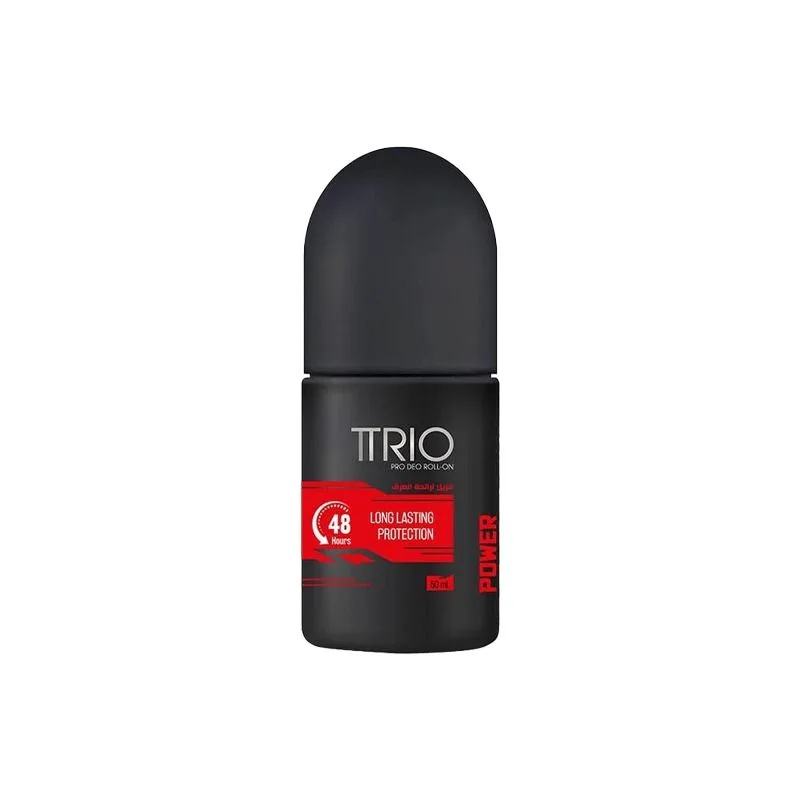 تریو رول باور –Trio Roll On Deodorant Power 50ml قوة رجاليّة تدوم ٤٨ ساعة! مزيل عرق خالي من الكحول، بريحة رجالية منعشة، يحميك من ريحة العرق طول اليوم من غير تهيج أو بقع على الهدوم. مثالي للجيم، الشغل، والمشاوير الطويلة.