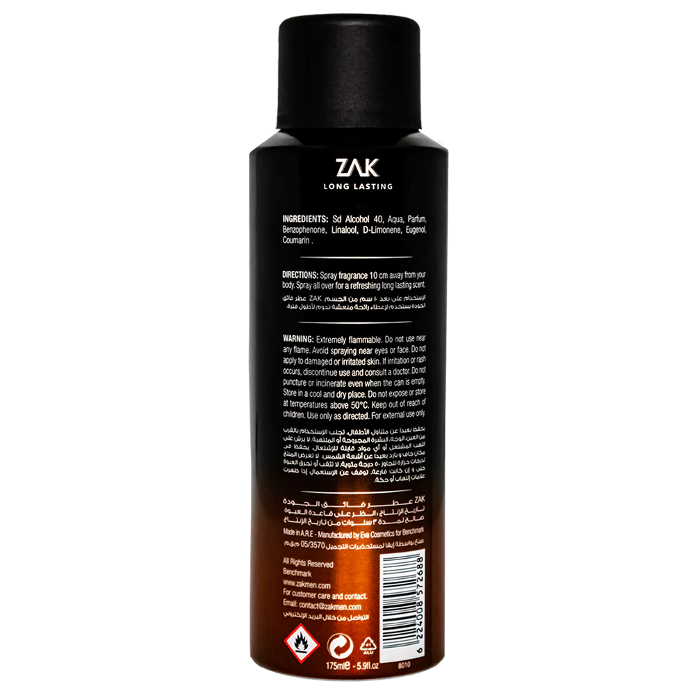 لو مستعجل وعايز ريحة تديك ثقة من غير ما تبقى تقيلة أو مزعجة، رشة من زاك كفاية تديك إحساس بالأناقة والتميز. مناسب جدًا للشغل، الجامعة، أو حتى خروجة مع صحابك.
